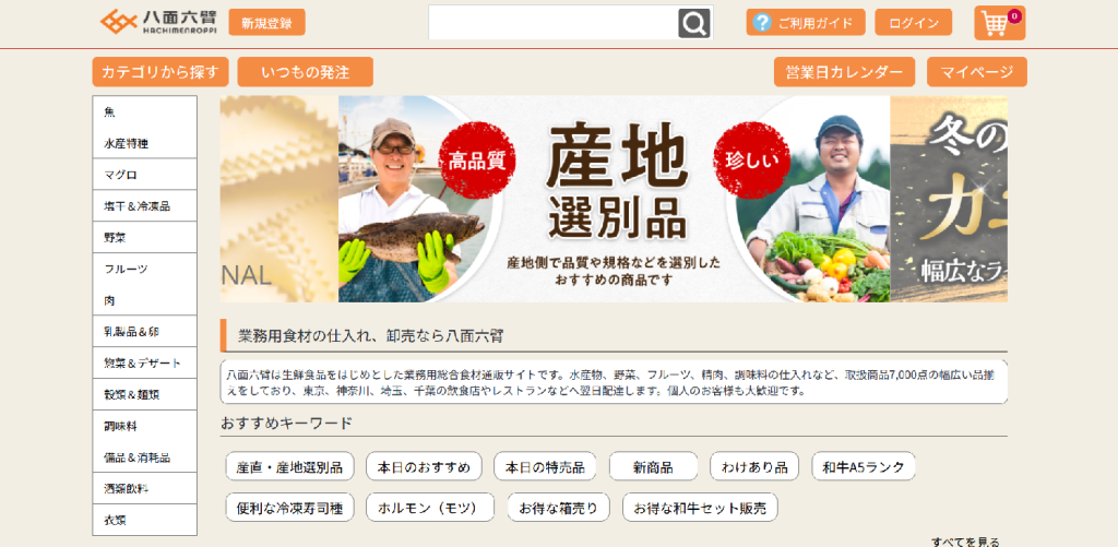 業務用総合食材通販サイト「八面六臂」に出展中です。